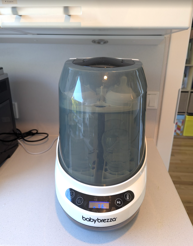 We use the Baby Brezza Bottle Washer Pro to wash bottles.